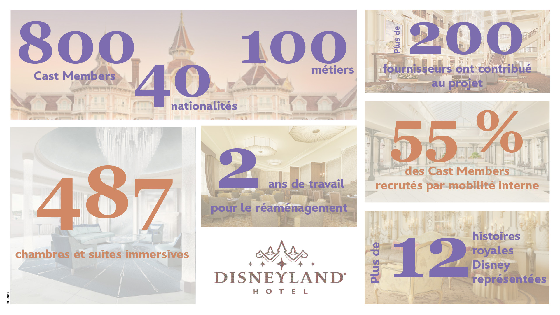 Toujours le lundi 22 janvier 2024, le Parc parisien propose de découvrir quelques chiffres clés à propos du Disneyland Hotel.